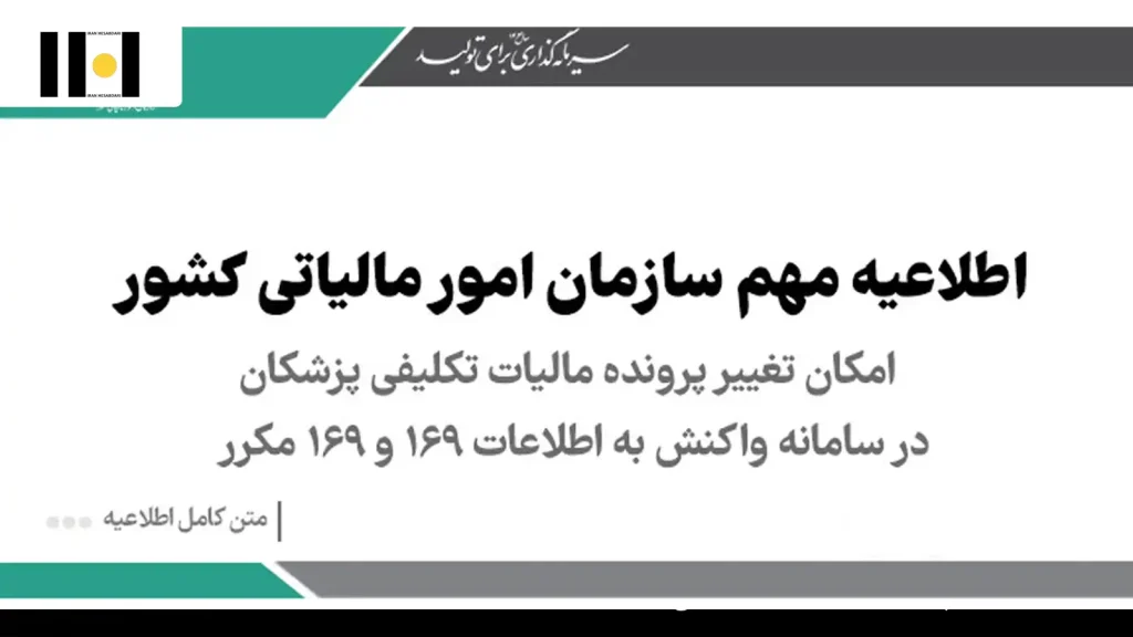 مالیات تکلیفی پزشکان در سامانه واکنش به اطلاعات ۱۶۹ و ۱۶۹ مکرر