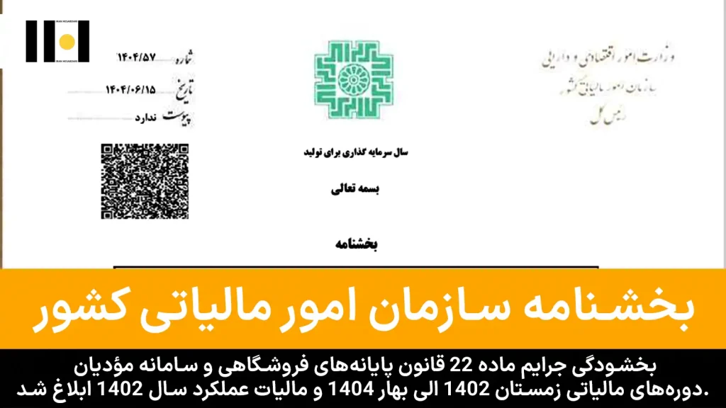 بخشنامه سازمان امور مالیاتی کشور: بخشودگی جرایم ماده ۲۲ قانون پایانه‌های فروشگاهی و سامانه مؤدیان